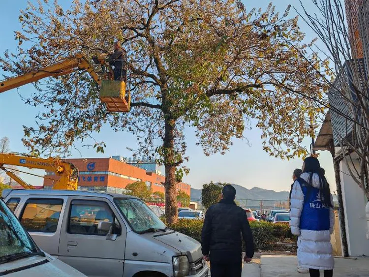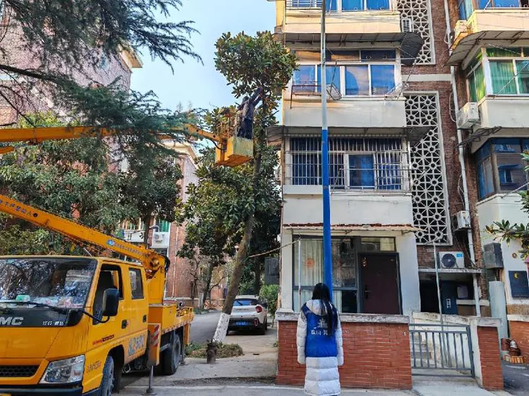 网格员坚守“巡查无死角、服务零距离”原则,发现问题后,社区工作人员立即实地核实树木位置、生长状况等信息,与物业快速对接确定处置方案,对“五字头”树木“适度修剪、保留主干”,清理冗余枝叶;为“八字头”歪斜树木修剪近窗枝干并加固根系,杜绝安全风险。处置现场,工作人员设置警示标识、引导居民绕行,网格员全程跟进协调诉求。经过半天作业,两处隐患彻底解决,既恢复环境美观,也消除居民顾虑。