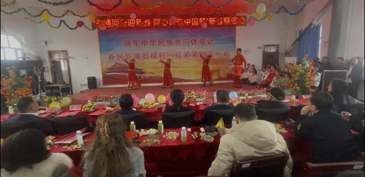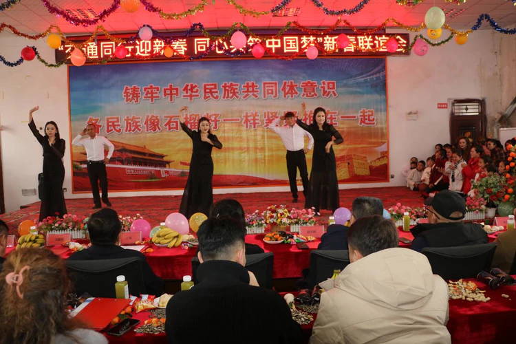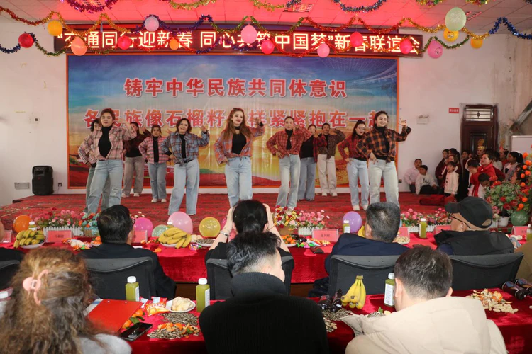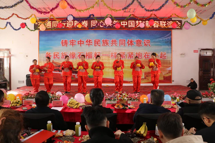 歌声袅袅诉深情,舞姿翩翩话团圆。市公交公司《塔吉克舞》、兴达出租车公司双人舞《赞歌唱祖国》、15村大学生现代串舞等节目接连上演,现场掌声、欢呼声此起彼伏,久久回荡在乡村上空。这场集文化交流、情感沟通、政策普及于一体的新春联谊会,既为各族群众送上满满新春祝福,更以文化为纽带拉近政企村距离,让民族团结的种子在每个人心中生根发芽。
