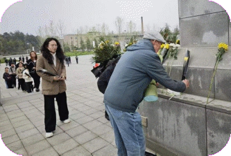 怀着对英烈的敬仰之情,全体参与人员身着素雅整洁的服装,党员佩戴党徽,手捧花束统一乘车前往岚山烈士纪念园,开启清明祭扫仪式。