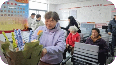 活动伊始,“巧手妈妈编织坊”的成员们与社区工作人员、党建工作室成员齐聚一堂,开启手工编织花束环节。社区早已备好毛线、钩针、细铁丝等编织材料,大家跟着视频教学认真学习,将对英烈的缅怀与崇敬,凝注于指尖的一针一线中。